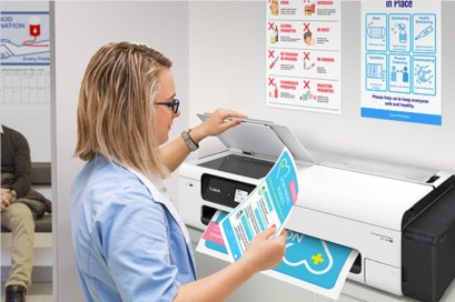 เป็นเครื่องพิมพ์หน้ากว้าง 24 นิ้วแบบตั้งโต๊ะที่รองรับม้วนกระดาษและช่องป้อนกระดาษอัตโนมัติมาตรฐานในตัว สำหรับพิมพ์งานเขียนแบบและโปสเตอร์คุณภาพสูงในสถานที่ทำงานแบบไฮบริด