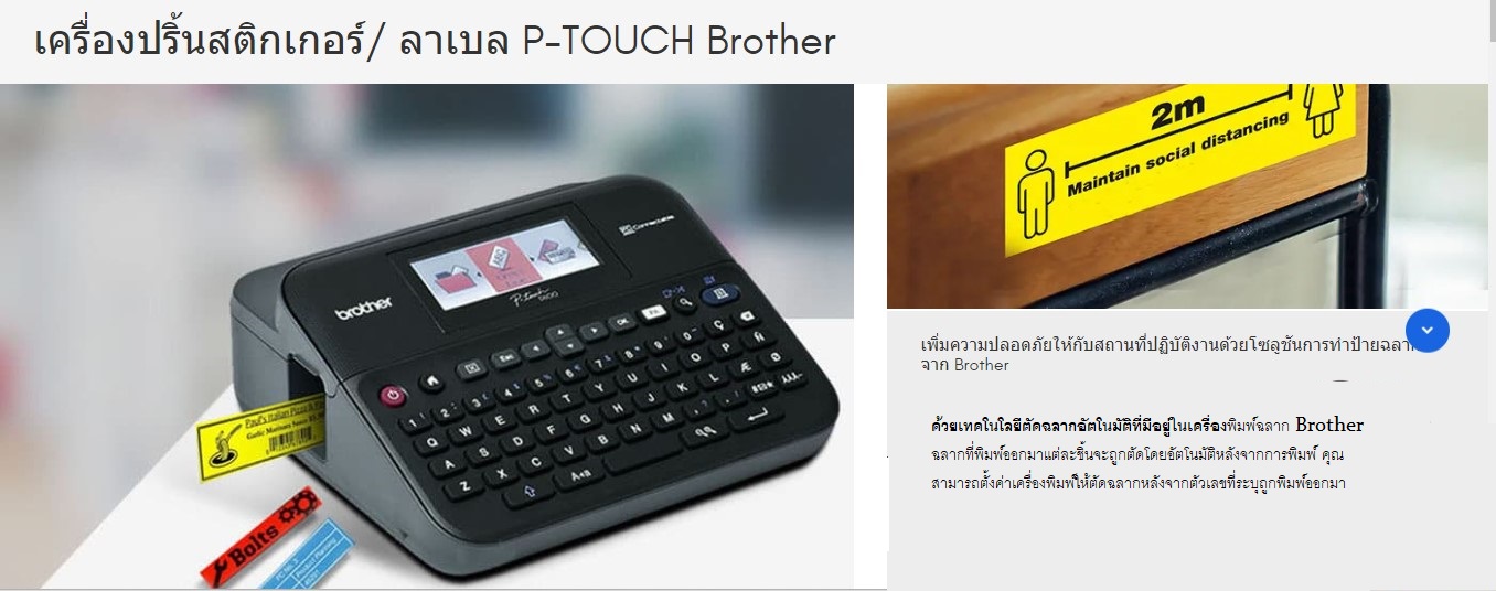 เครื่องพิมพ์ฉลาก ในสำนักงาน BROTHER LABEL PRINTER ใช้งานง่าย ประหยัดเวลาเครื่องพิมพ์ฉลากมืออาชีพ Brother สามารถพิมพ์ฉลากคุณภาพสูงได้ ตามต้องการ โดยพิมพ์ฉลากที่มีความกว้างสูงสุด ด้วยเทคโนโลยีการพิมพ์แบบ Direct thermal (ใช้ความร้อนโดยตรง) เหมาะมากกับการพิมพ์ฉลากแนวตั้งที่ใช้งานกันอย่างหลากหลาย