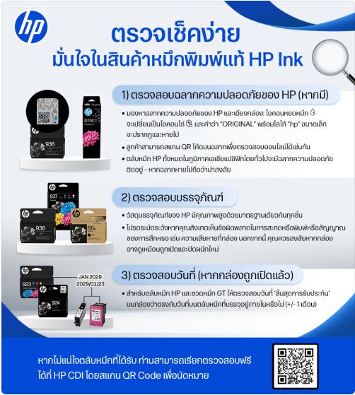 เอกสารการันตีจาก HP หมึกพิมพ์รับประกันของแท้แน่นอน