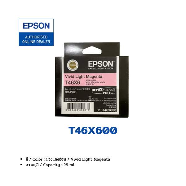 Epson T46X600 สีม่วงแดงอ่อน VIVID LIGHT MAGENTA น้ำหนัก 25ML ใช้กับเครื่องพิมพ์รุ่น SC-P708